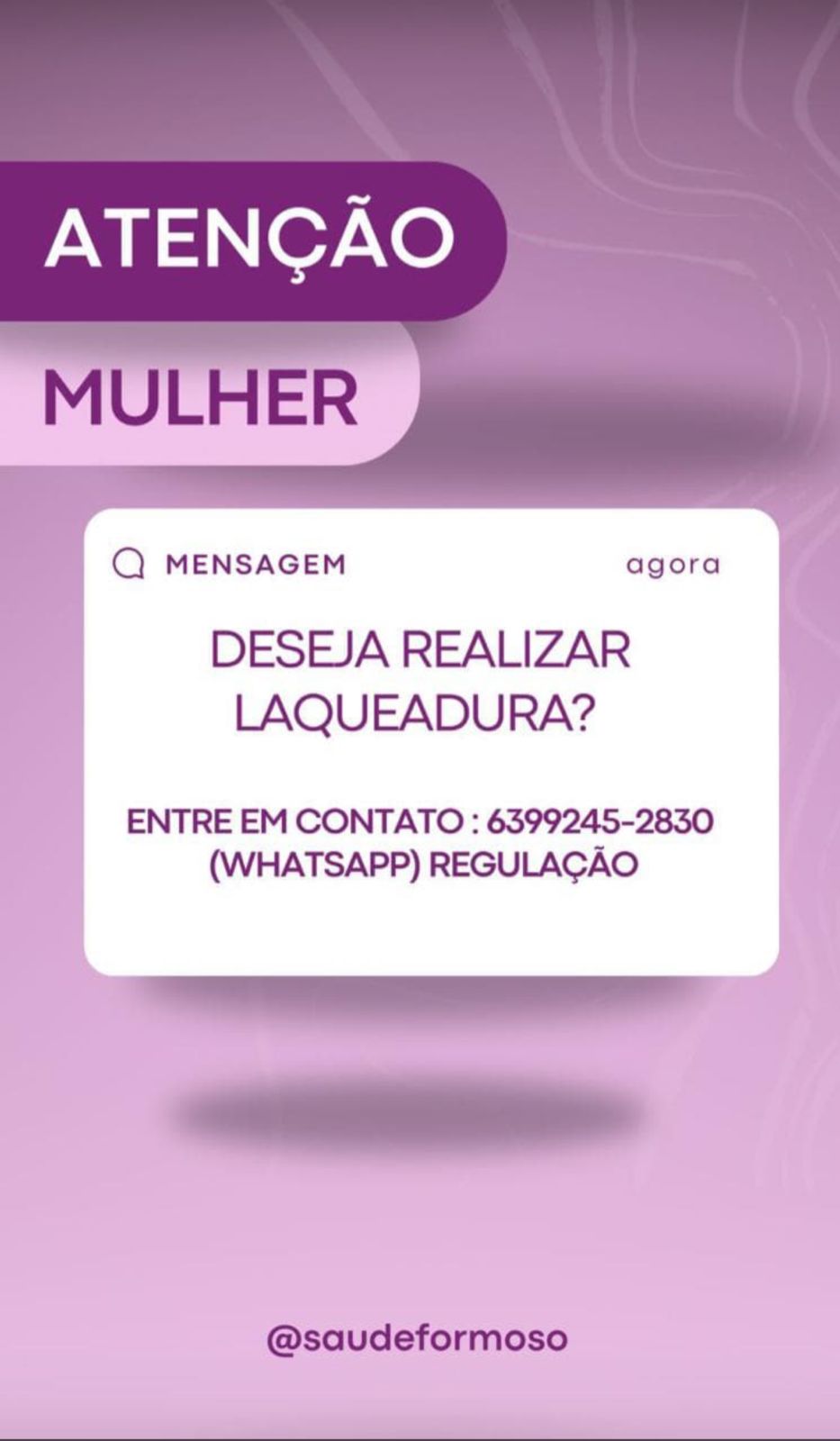 A secretaria de Saúde, disponibiliza o procedimento cirúrgico, laqueadura gratuito.