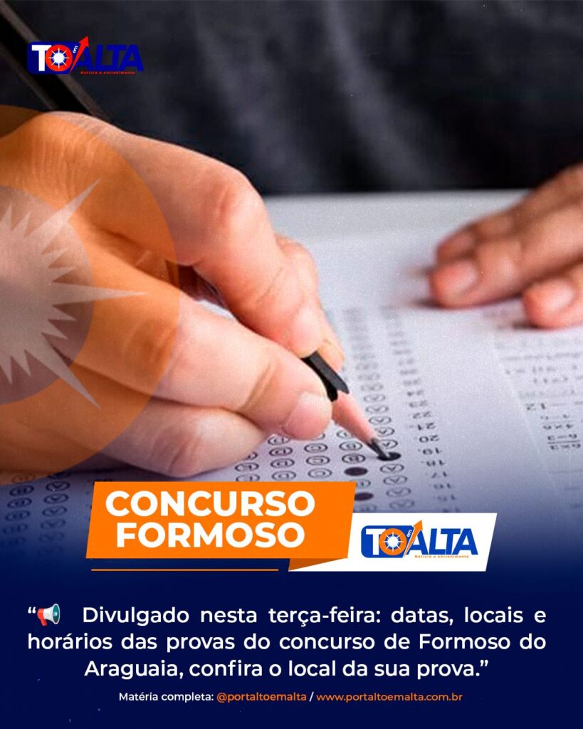 Nesta terça-feira, o Instituto Univida e a Prefeitura Municipal de Formoso do Araguaia publicaram o edital com as datas, os locais e os horários das provas que acontecem nos dias 13 e 14 de dezembro.